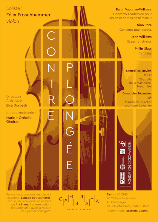 Elle vous invite à découvrir leur concert du dimanche 26 janvier à 16h à la Maison de quartier sous gare à Lausanne. Pour l’occasion, Felix Froschhammer, notre violon solo, se produit en tant que soliste.